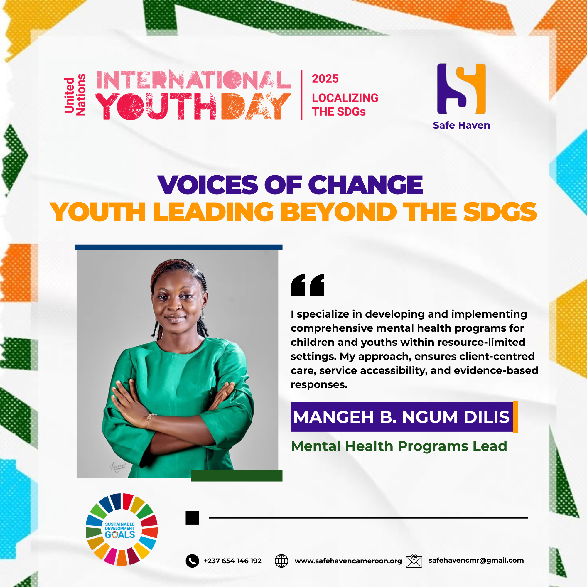 Mangeh B. Ngum Dilis a dedicated Mental Health Programs Lead committed to enhancing mental well-being for children and youths in resource-limited settings. With a strong background in Mental Health for Development Professionals under the University of Washington, Mangeh develops and implements comprehensive programs that ensure client-centred care, accessibility of services, and evidence-based responses.